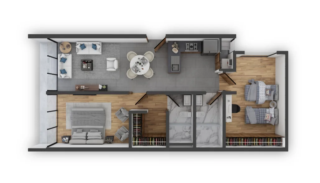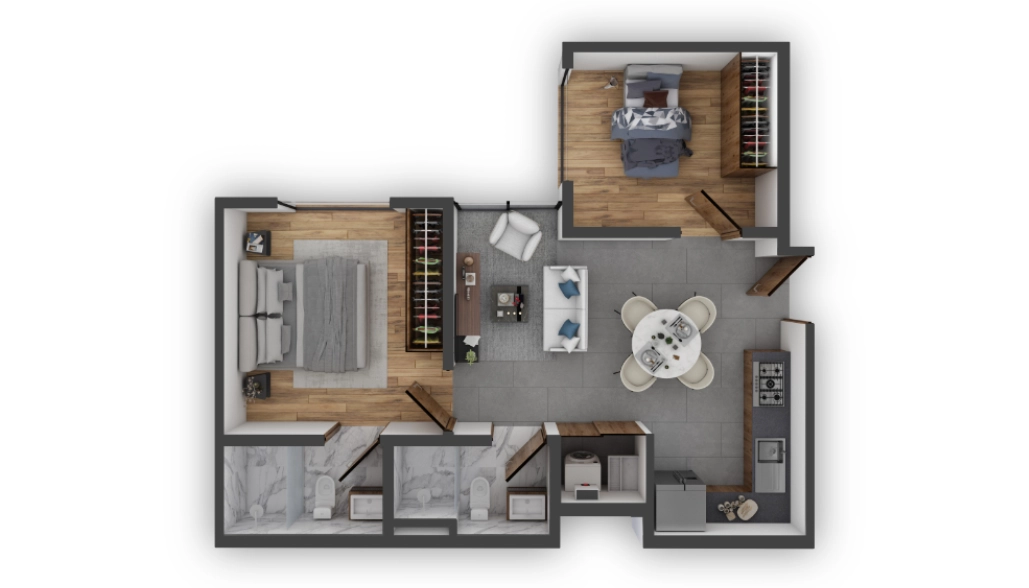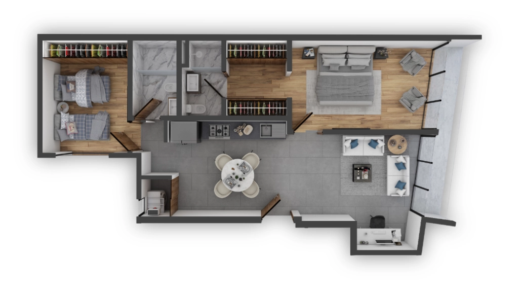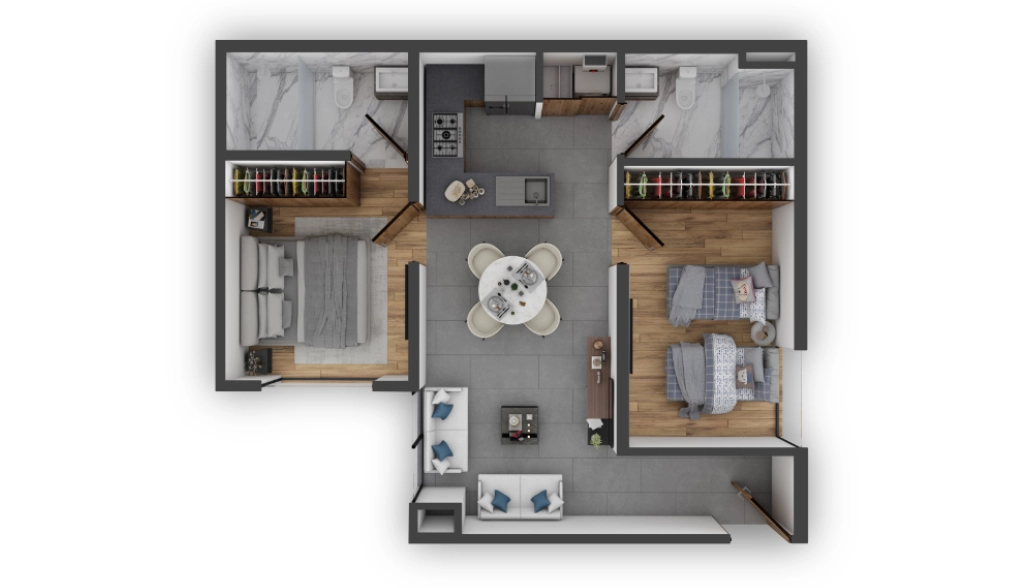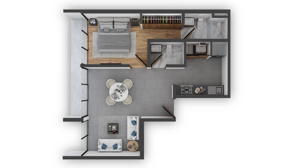 Nuestros acogedores departamentos están equipados con cocinas de primer nivel, acabados de alta calidad y accesorios de lujo. Además cuentan con carpintería importada y doble vidrio en fachadas para brindarte la máxima tranquilidad.